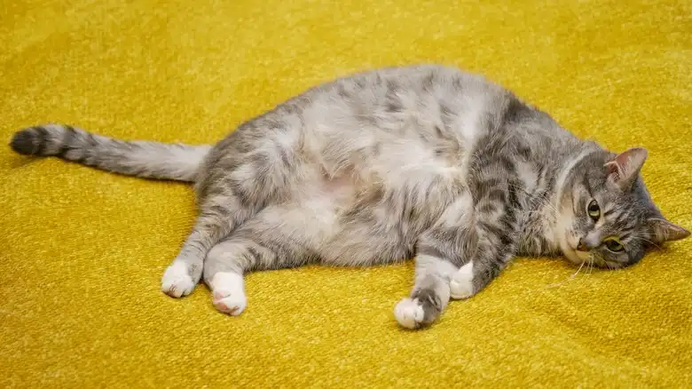 Normally, a cat's gums are moist and bright pink. However, a dehydrated feline's lips might seem to stick to their gums, with the latter potentially appearing pale or white. In addition, your cat's saliva may be thicker or gooey compared to normal, possibly leading to eating difficulties; they may also be less interested in their food.